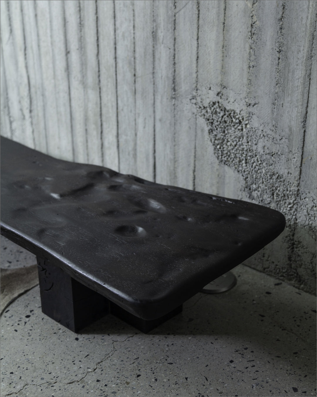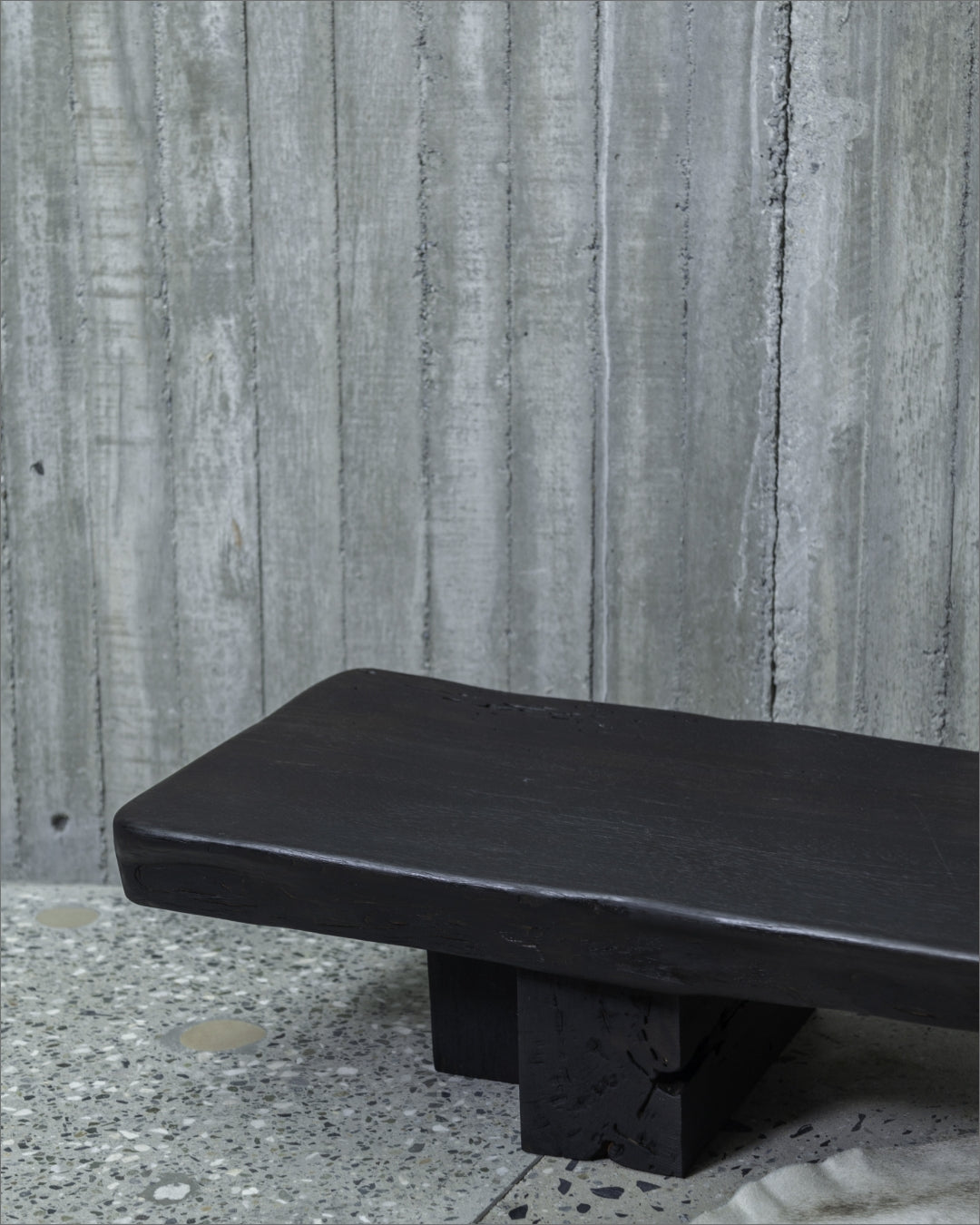 El nombre representa una de las muchas culturas que hacen parte del territorio. Palenque es casa de fuego, música, cuna gastronómica y cultural del país. Conservamos las endiduras de la madera en la madera, los relieves del tronoco y enfatizamos las curvas, las grietas que muestran el paso del tiempo. El color negro se da por un proceso con fuego.