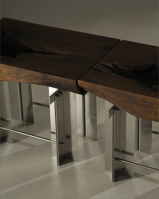 Contrapunto es un trabajo colaborativo en el que se encuentran dos diseñadores, y con ellos, dos miradas, dos materiales y dos expresiones. Somos lo que dejamos en el otro: este trabajo es un ejercicio de contraposición de dos naturalezas para que surja una nueva en el intercambio.